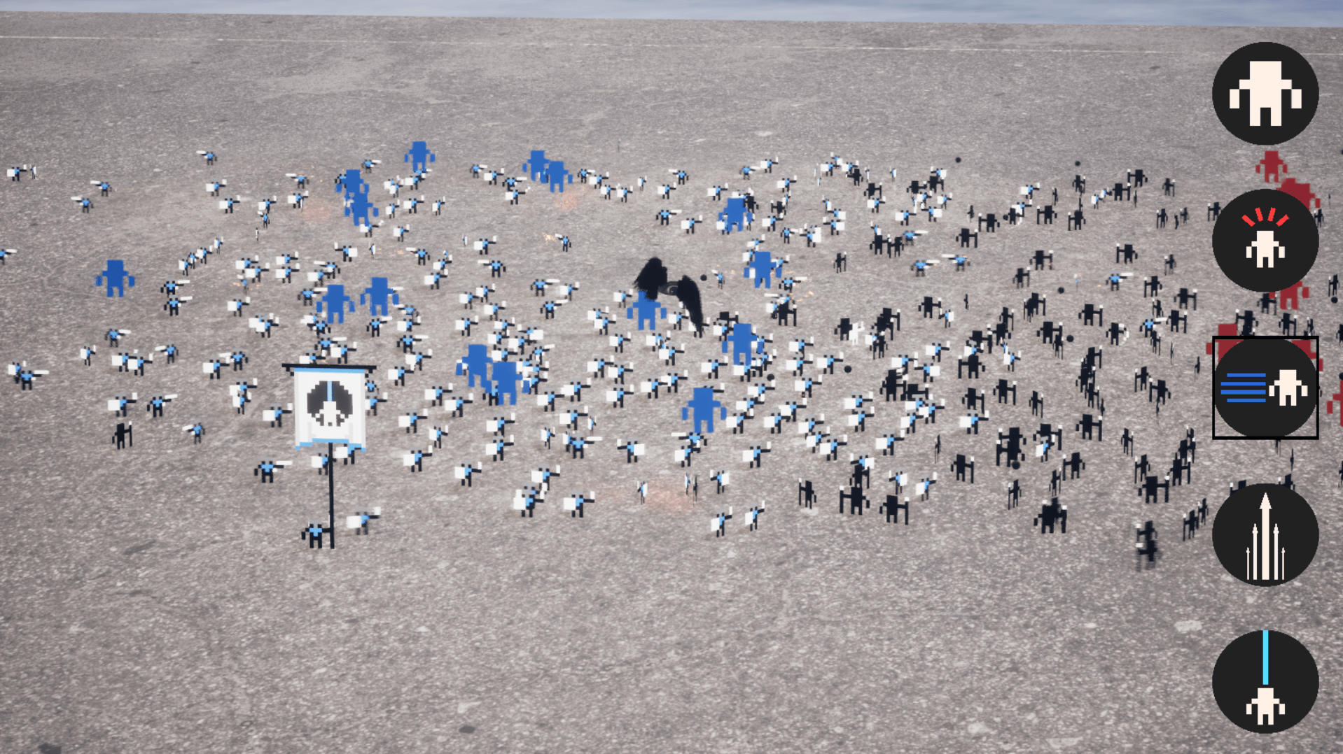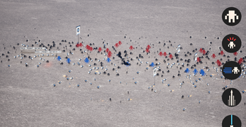 The simulation of each soldier goes deep under the surface with them having different personnalities affecting their statistics and crowd behavior. The game makes use of a deactivable pixel art style shader.